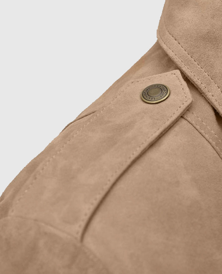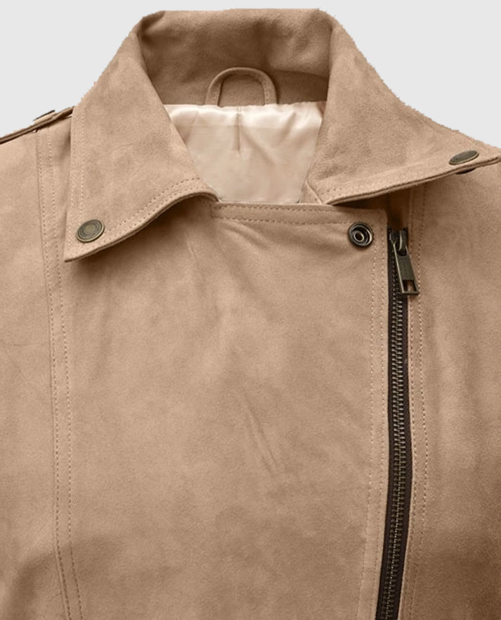 Women's Dusty Beige Suede Leather Fringes Jacket